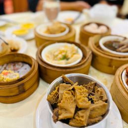 This place is the epitome of traditional dim sum. They have everything here and the prices aren't bad at all. The first time I've ever had dim sum was here, and there hasn't been a place that's come close to it. If I were you, I would get the stricky rice, lol. The service here is really, really fast. The people here work hard, and it shows. As soon as you sit down, you're getting offered food left and right. And if you're ordering to go, you're getting your food in under 5 minutes (assuming you get their attention). The ambiance here gives traditional dim sum vibes. Come bless your taste buds and come!